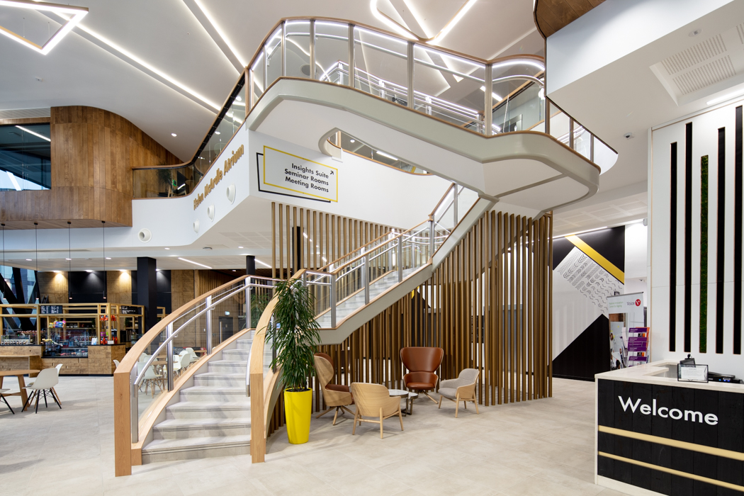 Located on the Newcastle Helix development, The Catalyst is home to Newcastle University’s teams from the National Innovation Centre for Ageing (NICA) and the National Innovation Centre for Data (NICD). The 6-storey building provides a wide mix of tailored and shared facilities including an interactive double height public exhibition space, a 75 capacity TED style theatre, shared workspaces, Grade A commercial spaces and an impressive 22 seat boardroom with panoramic views of the Newcastle skyline.